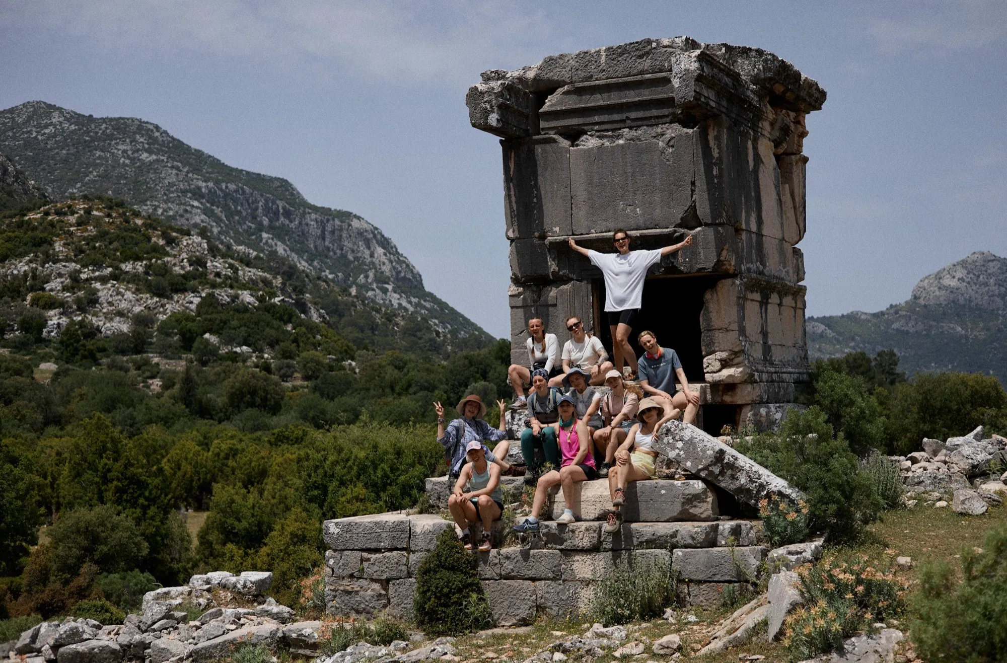 Идем в сторону моря - вначале проходим древние ликийские гробницы, поднимаемся на небольшой перевал (750 м), обедаем в Беле чорбой и спускаемся прямиком к морю. Ночевка на живописном пляже возле села Гавурагили в кемпинге Карадере. Если успеем до заката, будет время, чтобы насладиться купанием и встречей заката.