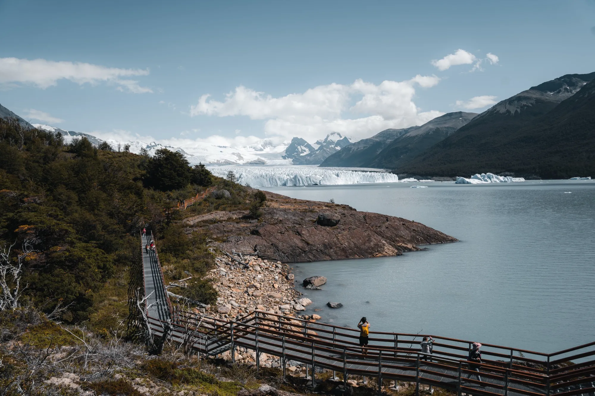 Сегодня с утра выезжаем в Эль-Калафате и едем на осмотр огромного ледника Перито-Морено, язык которого спускается в воды озера Архентино. Здешние водоемы похожи на фьорды с плавающим льдом ярко-синего цвета. Днём под действием жаркого солнца от ледника откалываются огромные глыбы, с грохотом падая в воду. Вечером возвращаемся в Эль-Калафате и гуляем по городу.