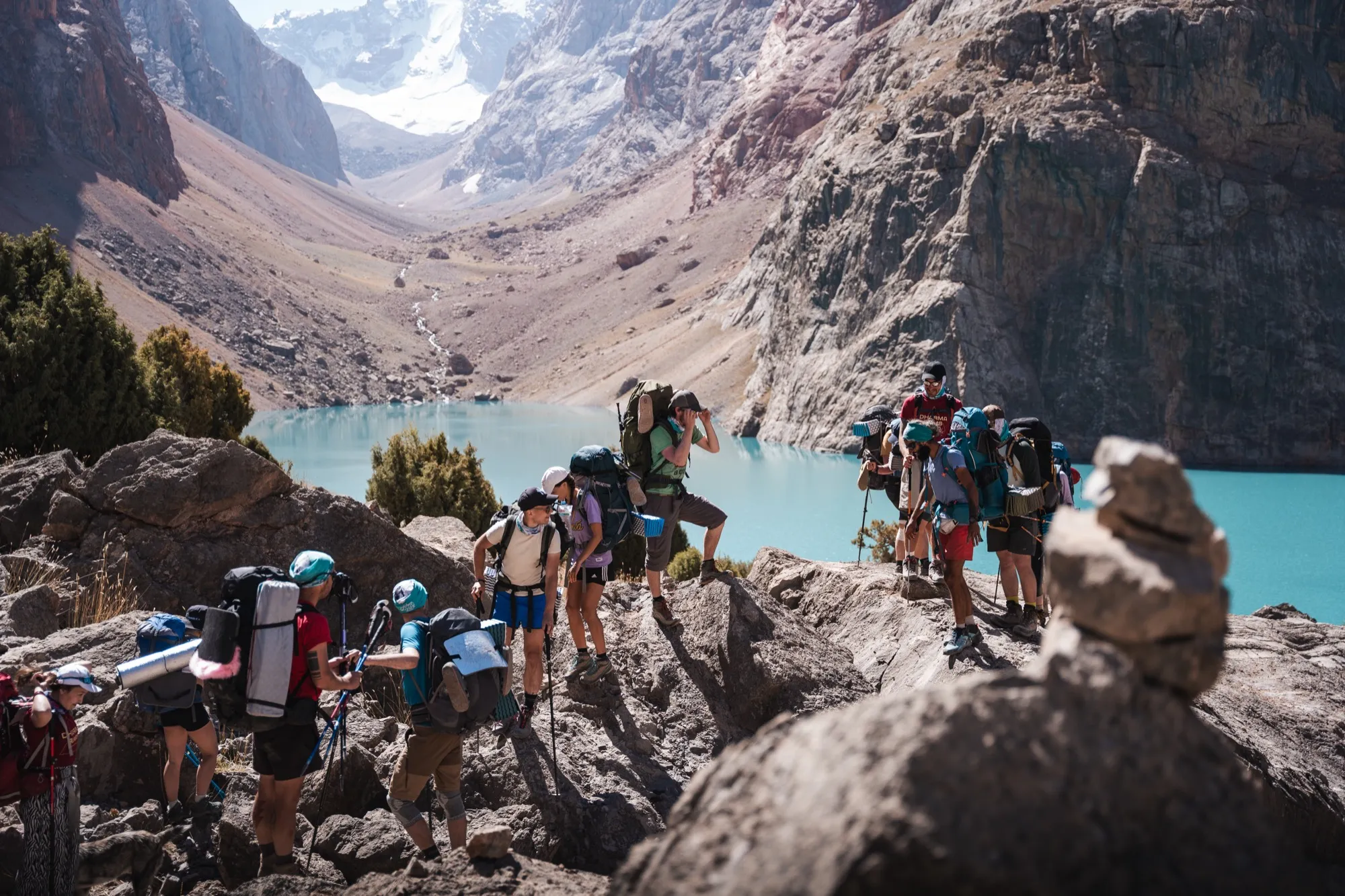 Прощаемся с озером Большое Алло и этим прекрасным местом. Впереди нас ждёт спуск по долине реки Зиндон. Недоходя до слияние рек Зиндон и Амшут ставим лагерь на высоте 2000 метров на озере Малое Алло, в котром можно искупаться. Это последнее озеро на нашем маршруте. Да и вечер с костром у нас заключительный в походе по Фанским горам. Да, ещё впереди переход и дорога до Самарканда, а там ещё один вечер. Но поход, увы, подходит к концу. Делимся впечатлениями, поём песни, играем, ложимся спать. Завтра последний ходовой день.