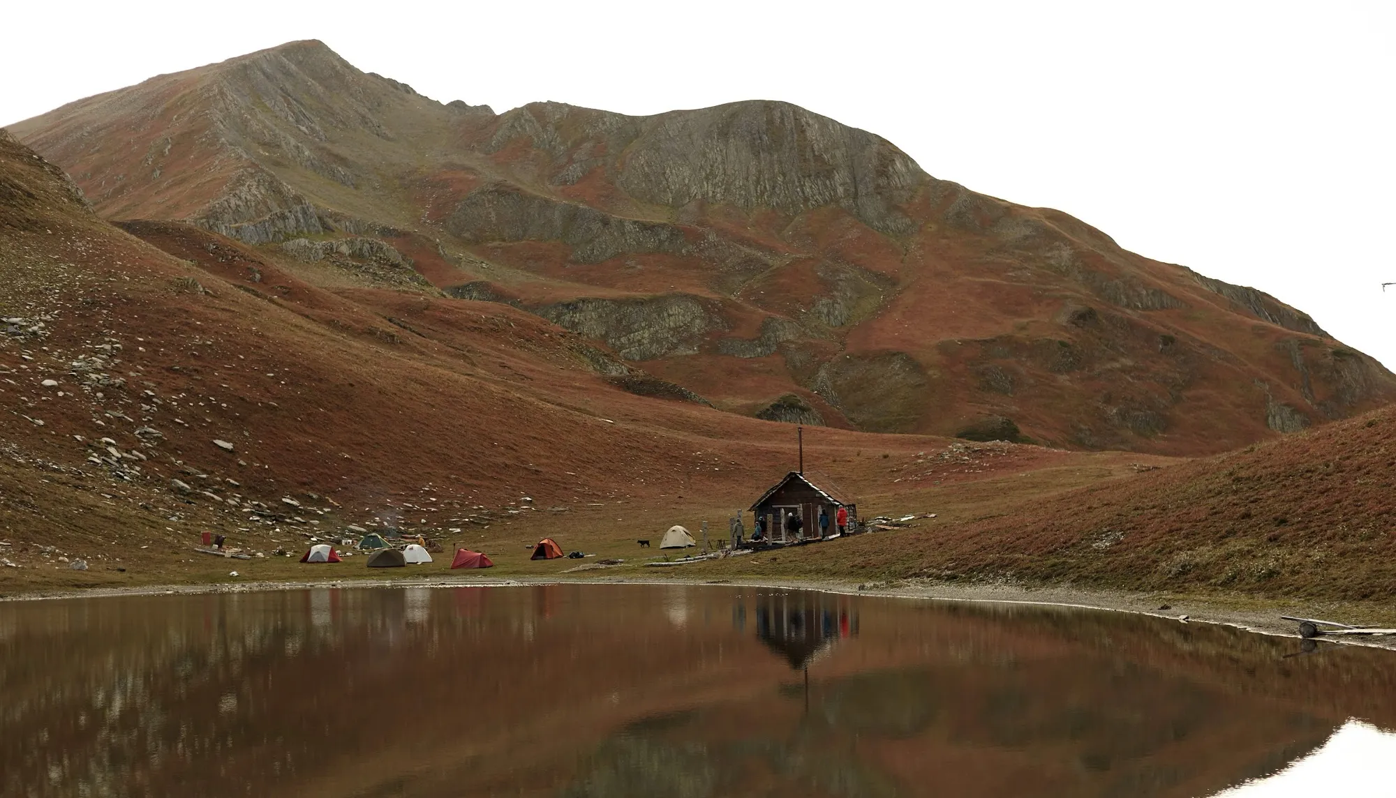 Стоянка у нас у озера. Рядом стоит церковь, к которой можно прогуляться, как только мы поставим палатки и поедим. Дров здесь нет, но есть домик пастуха, который в это время уже не функционирует, и если повезёт, то дрова могут быть - а это означает, что у нас будет костёр. Без костра и жизнь нет :)
